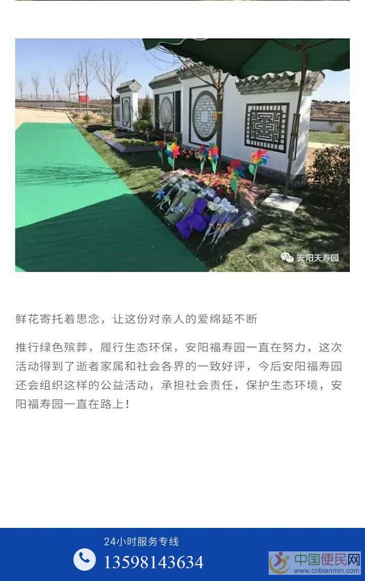 河南安阳天寿园公墓是经河南省民政厅批准,安阳县民政局主办,福寿园国际集团投资兴建的合法公墓,陵园占地100余亩,有天寿名人苑、洪福苑、紫绿苑、青松苑、翠柏苑等区,规划有福位两万余个,是一风水绝佳的大型绿色环保人文纪念园中+国+便+民+网。
